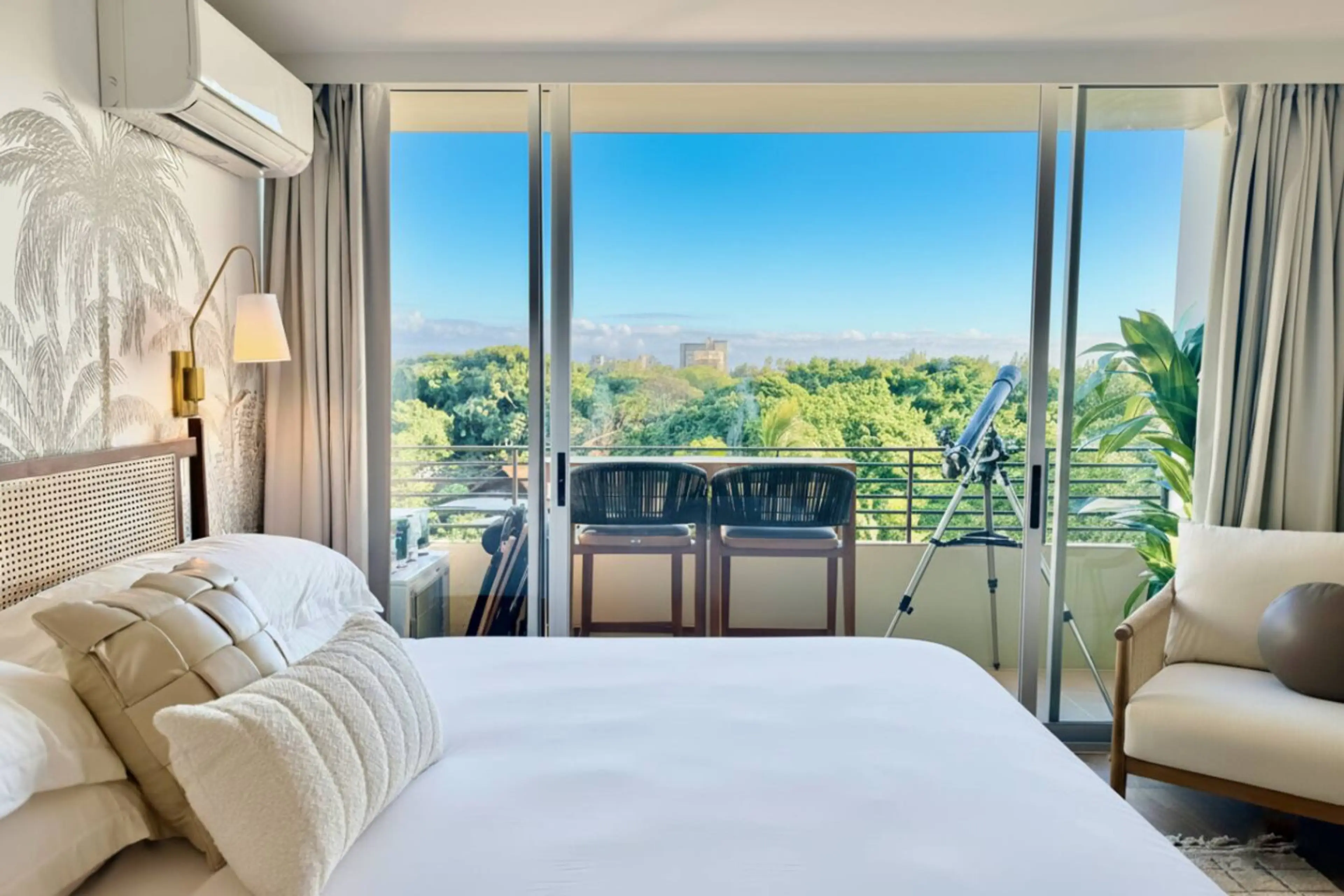 Aloha and welcome to your island getaway in Waikiki! Steps from the beach, this charming studio offers panoramic views of Diamond Head and the ocean from your private lanai. Enjoy meals al fresco, relax, or stargaze at night with the telescope Everything Waikiki has to offer is within walking dist...