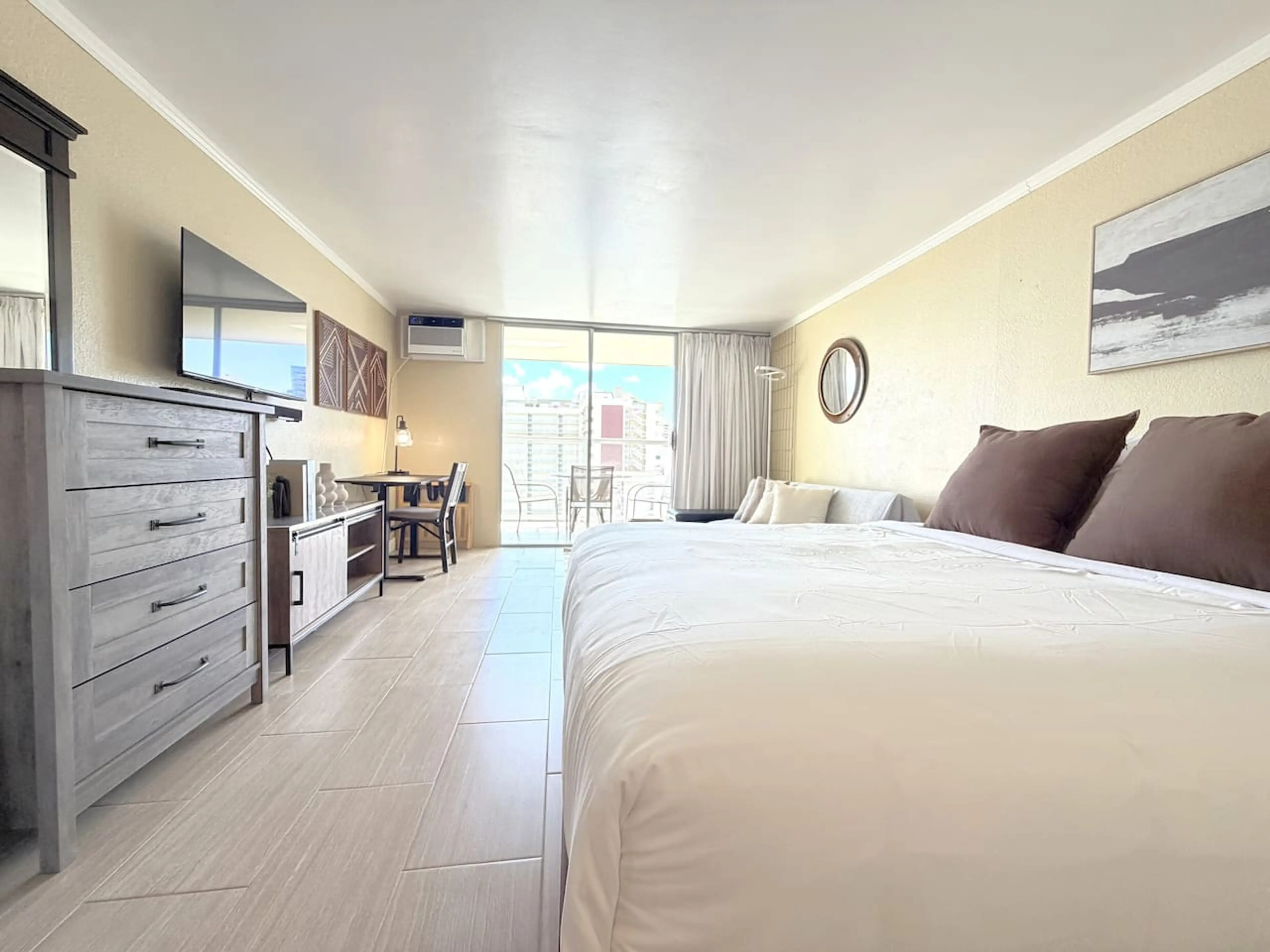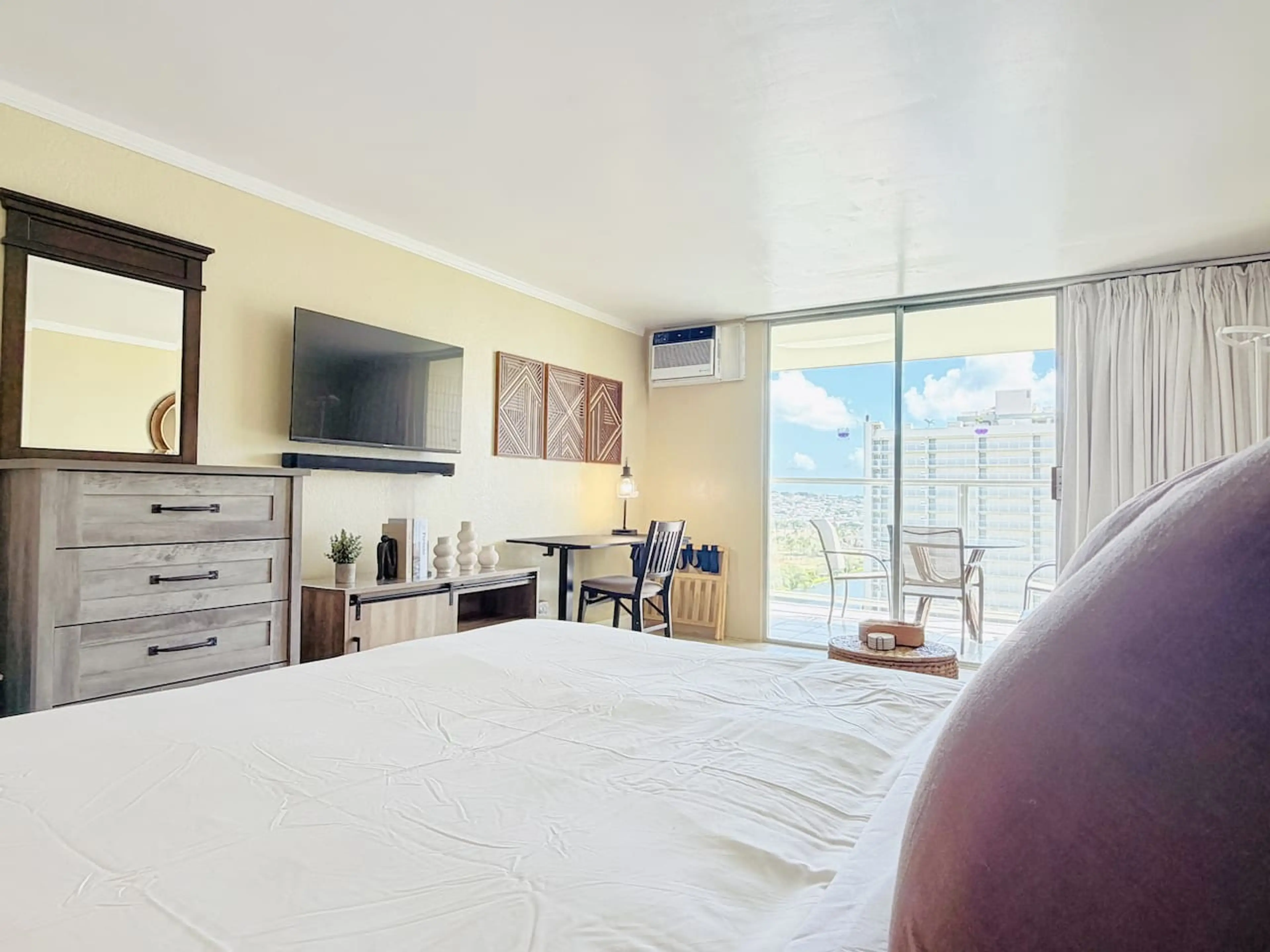 Located at the most prime location Central of Waikiki, A block away from famous International Market. and mall, walking distance to beach, restaurants . On site "Forty Niner " cafe. Large swimming pool, Hot Tub, Sauna, BBQ Grills and picnic tables and a Fitness Center. A very spacious lanai (balc...