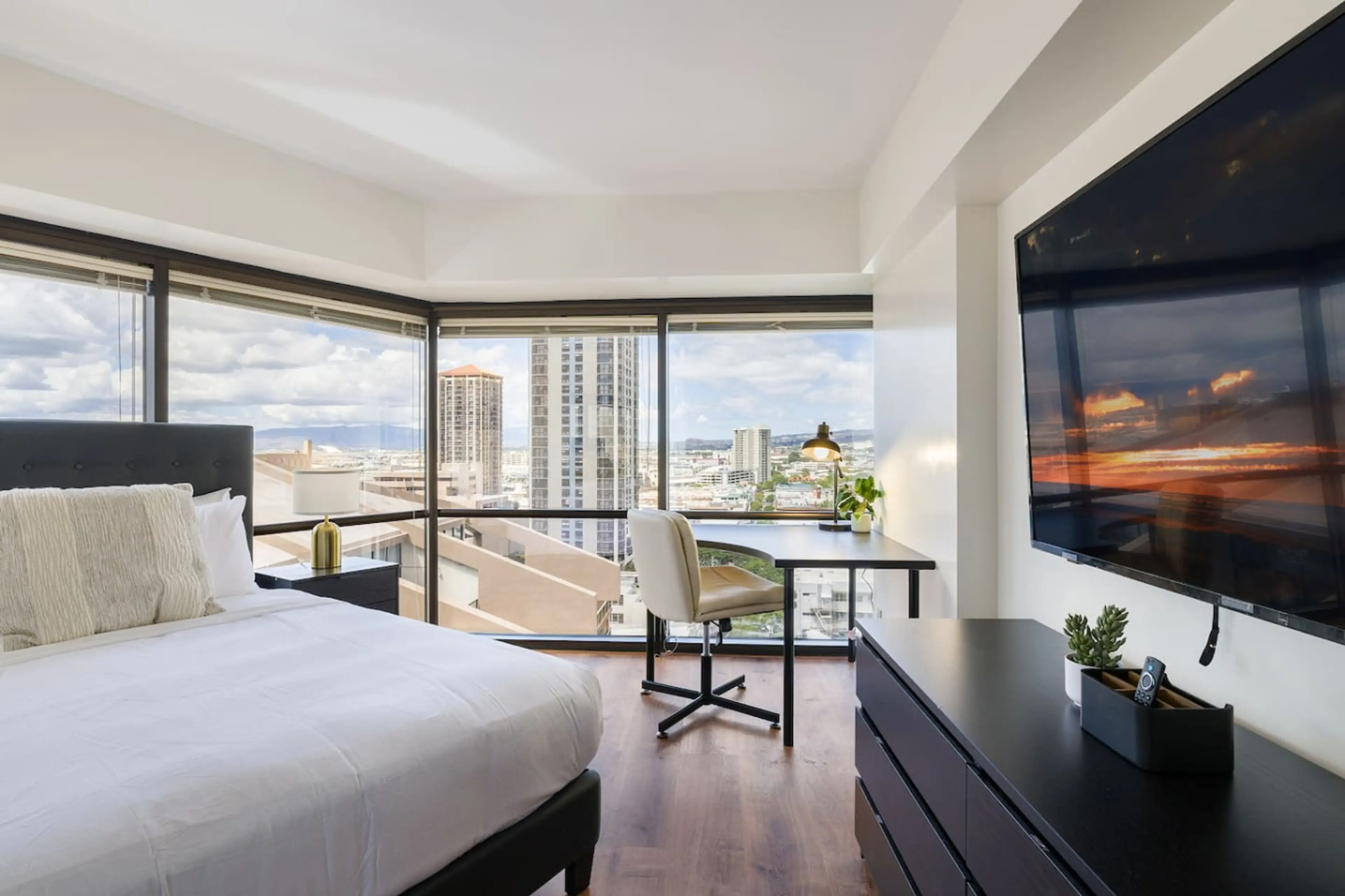 π¨ Experience Honolulu in style from our 15th-floor one-bedroom suite! ππ¨ Sleep soundly on a King bed or cozy up on the sofa bed, perfect for 4. π» Free WiFi and cable for endless entertainment. ποΈ Walk to Walmart, Ross, and 7-Eleven. π₯ Dine at top spots nearby. π Unwind in the large pool or ja...