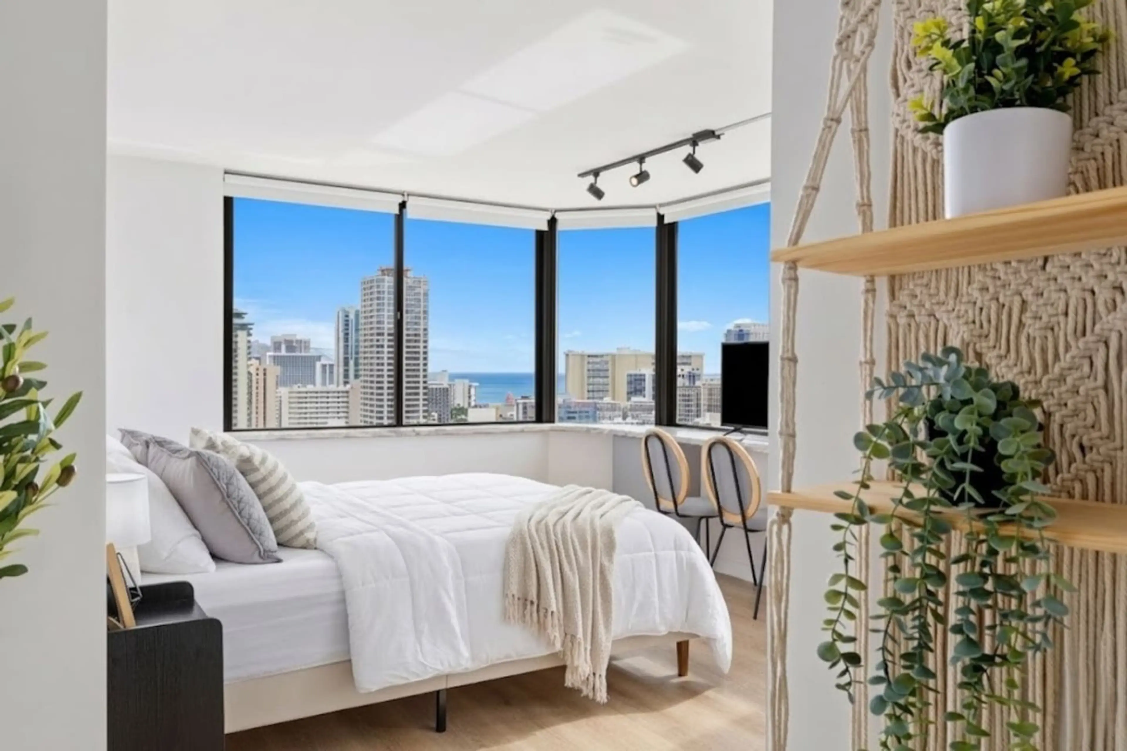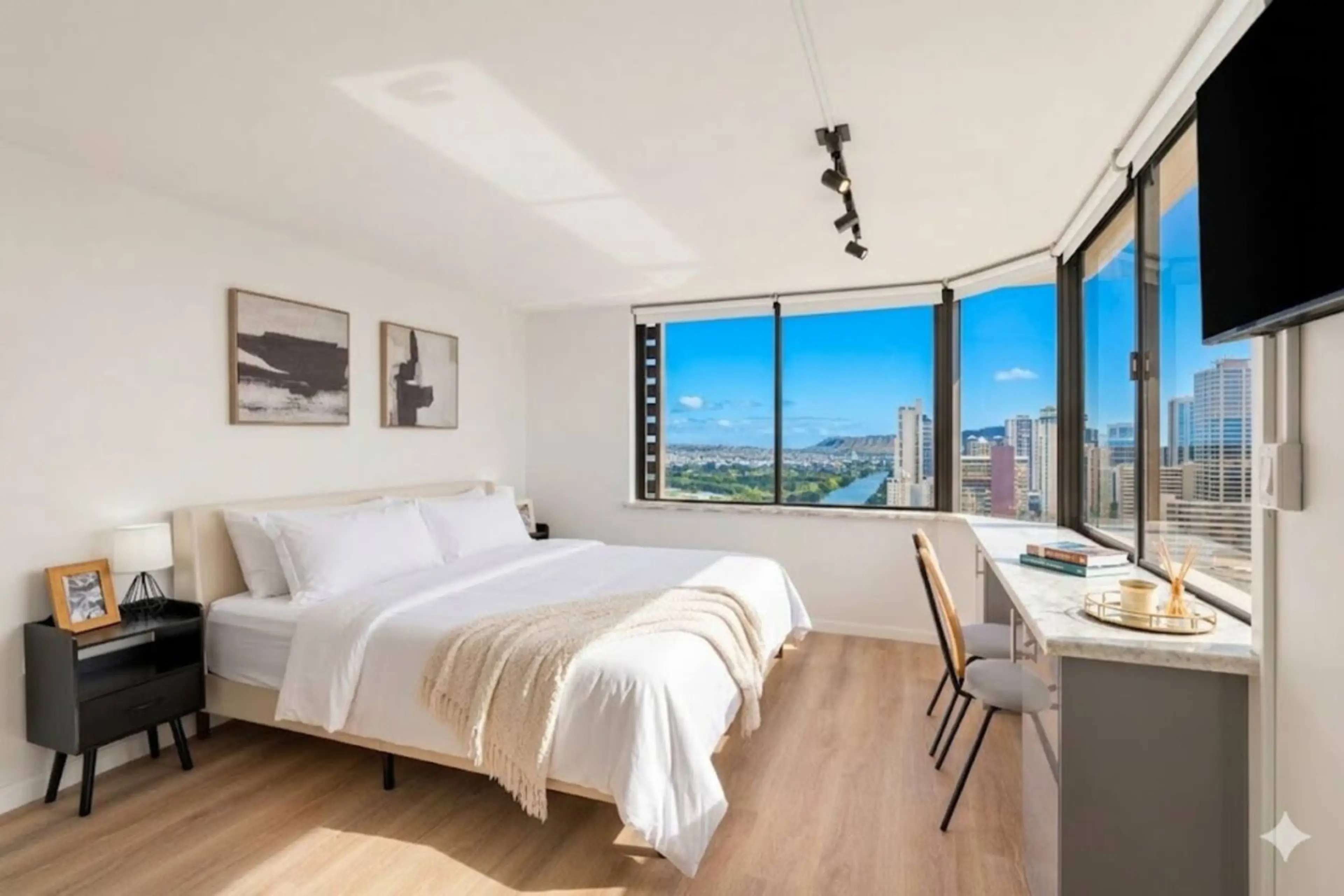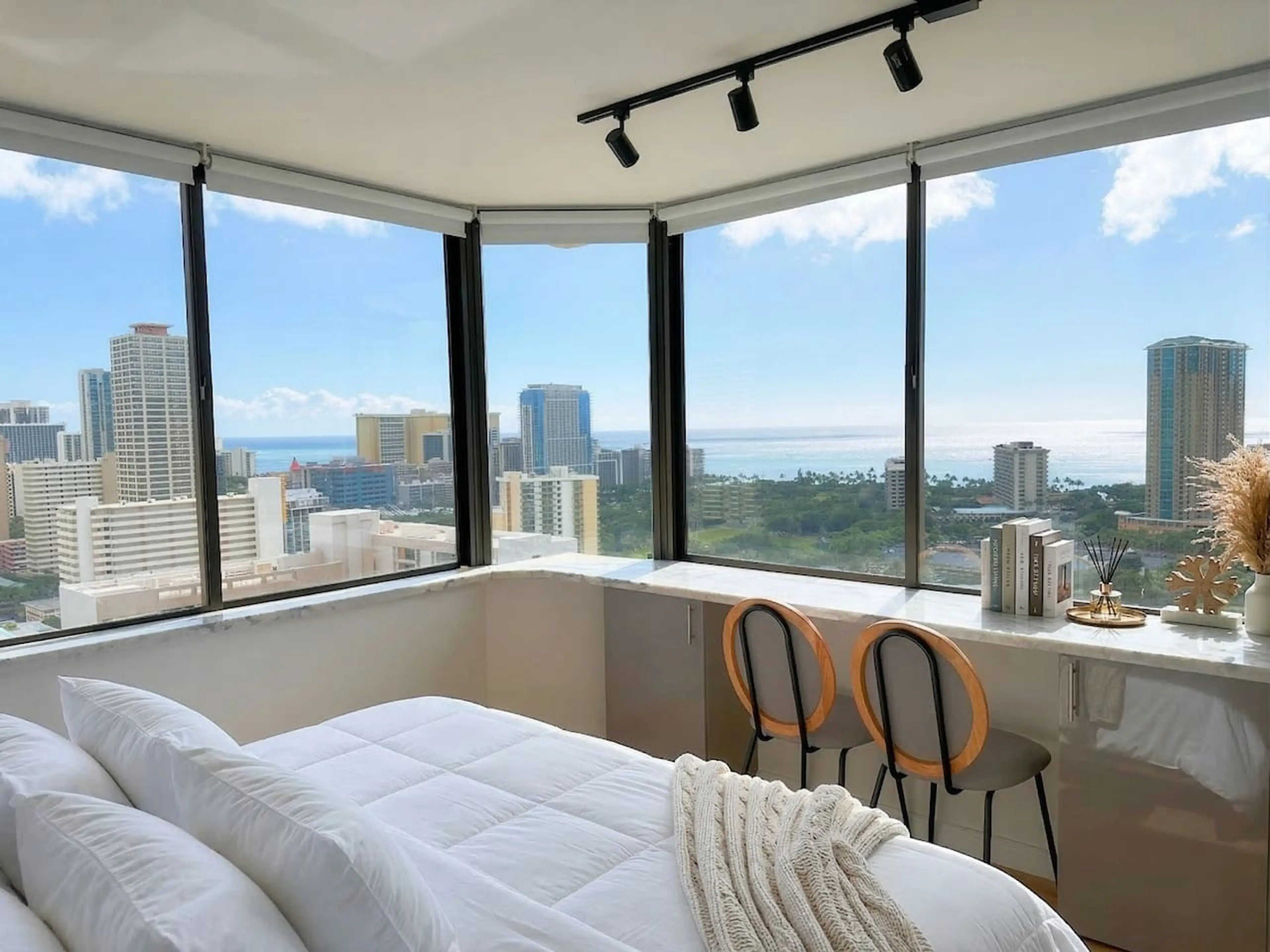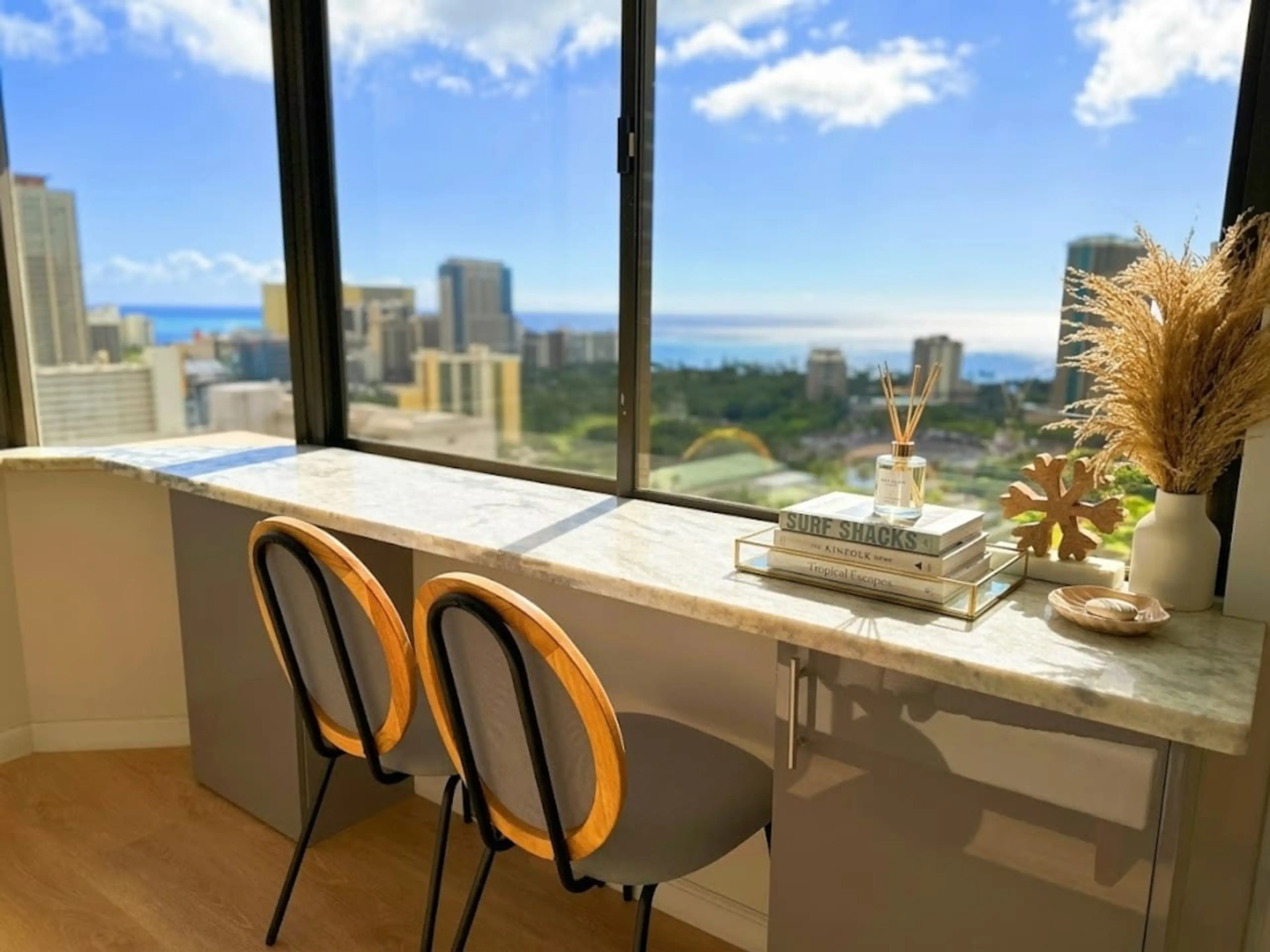 At the beginning of Waikiki, the tourist center of Honolulu. Our charming studio in Waikiki is a breezy unit in Hawaiian Monarch building. Enjoy breathtaking Ocean & Mountain views. Hotel quality sheets, pillows, and air conditioning await you. Excellent location right across the convention center...