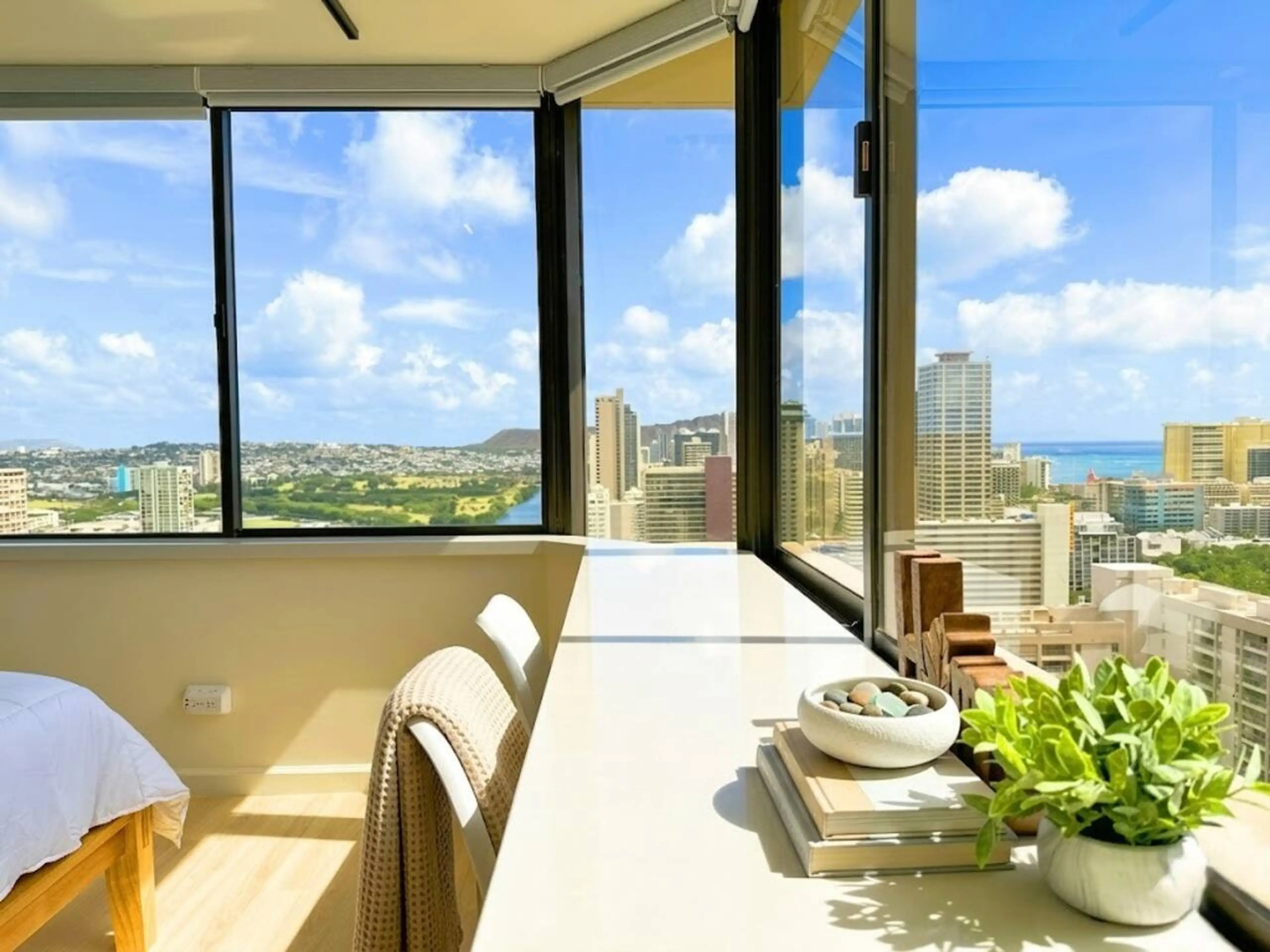 At the beginning of Waikiki, the tourist center of Honolulu. Our charming studio in Waikiki is a breezy unit in Hawaiian Monarch building. Enjoy breathtaking Ocean & Mountain views. Hotel quality sheets, pillows, and air conditioning await you. Excellent location right across the convention center...