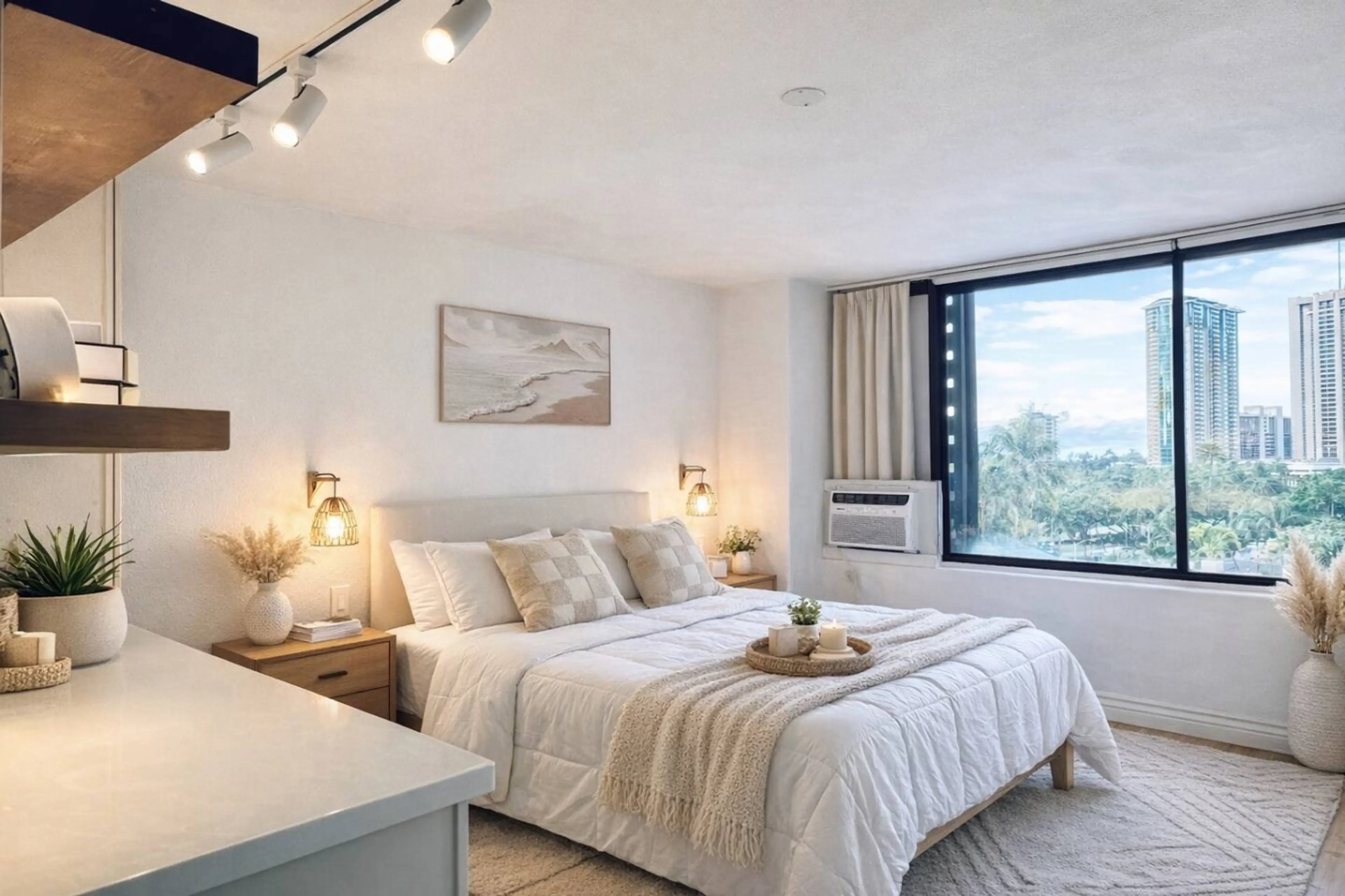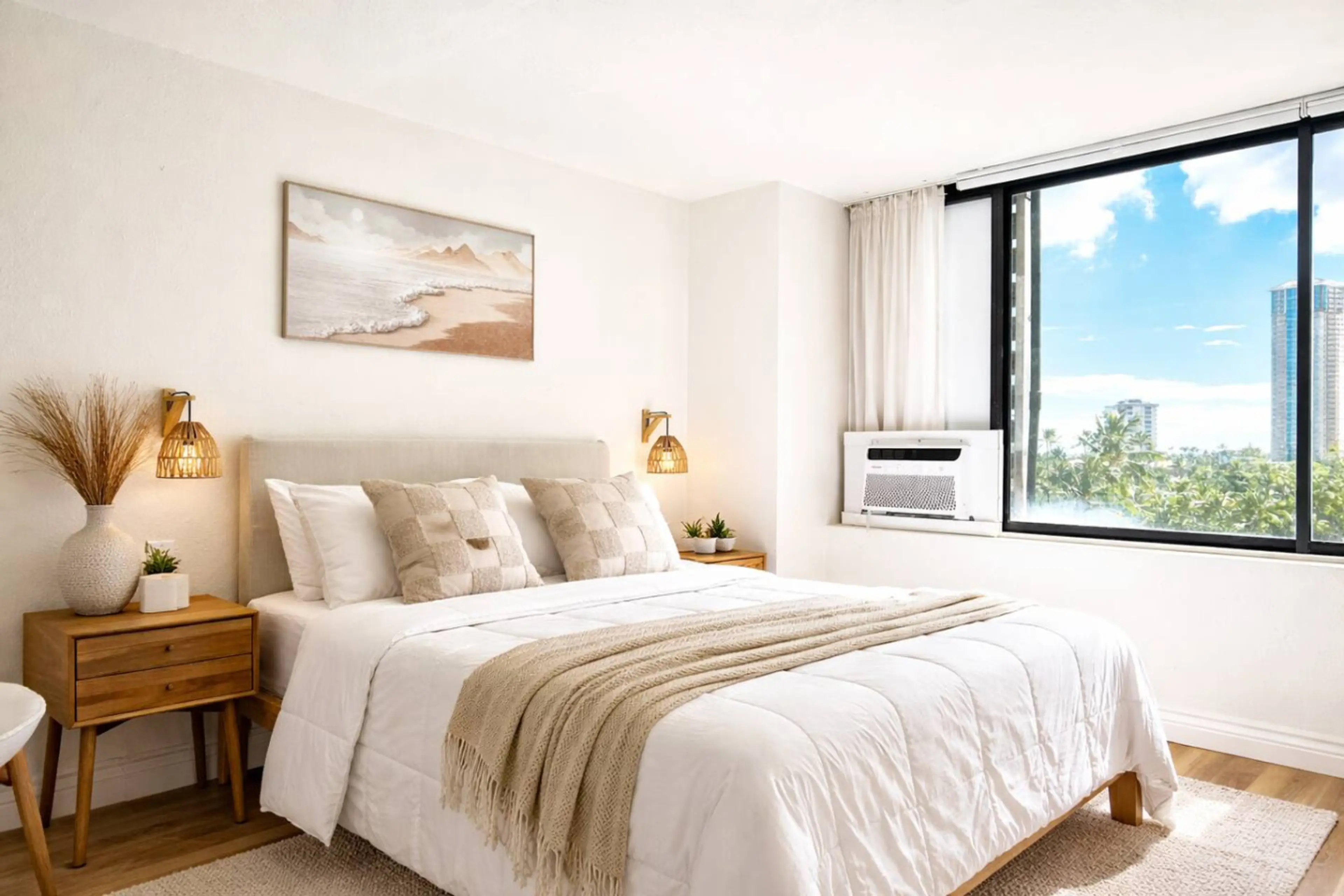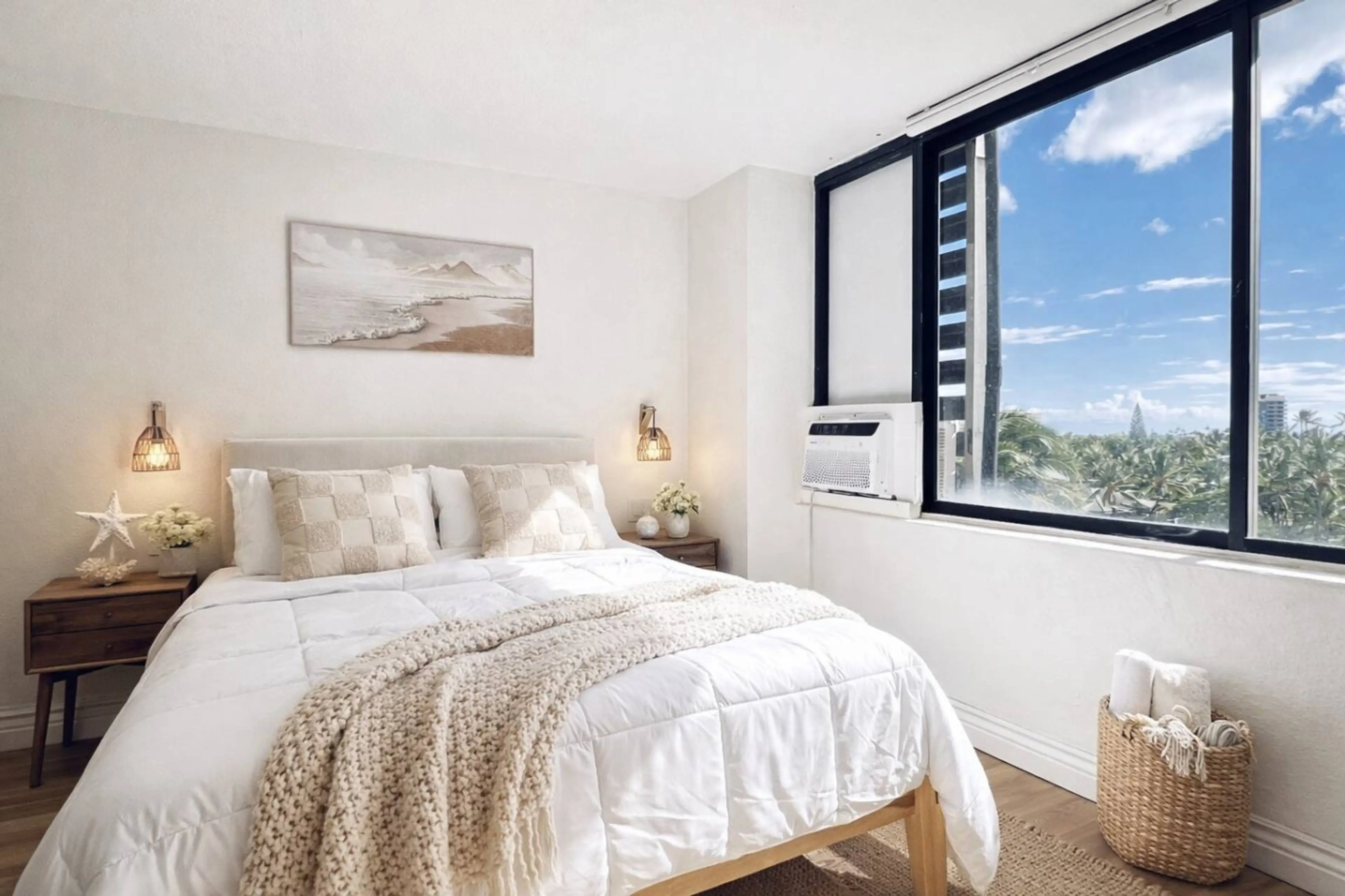 At the beginning of Waikiki, the tourist center of Honolulu. Our charming studio in Waikiki is a breezy unit in Hawaiian Monarch building. Enjoy breathtaking park view. Hotel quality sheets, pillows, and air conditioning await you. Excellent location right across the convention center, about a 10-...