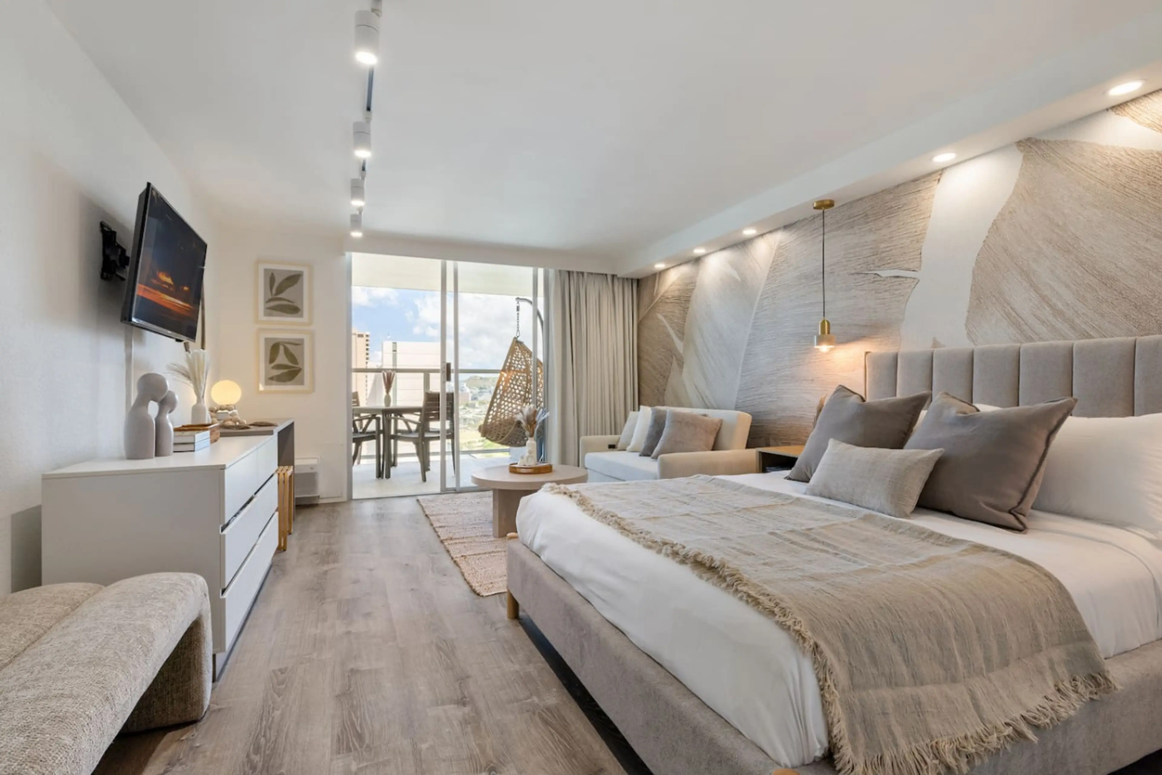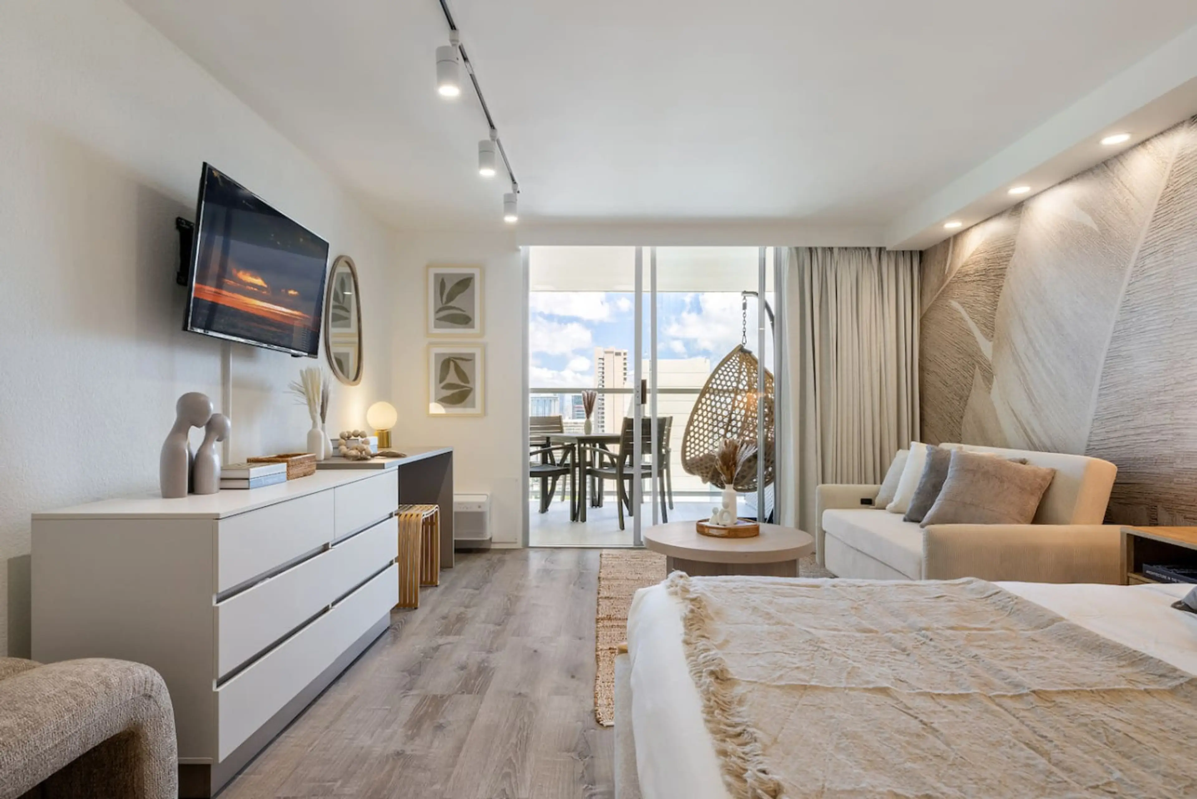 π΄Discover the heart of Waikiki with this stunning 32rd floor condo, just a stone's throw from the International Market. Bask in the tropical ambiance from the expansive lanai, boasting 180Β° vistas that embrace the ocean and city skyline. Unwind in the serene retreat of a comfortable queen-sized bed...